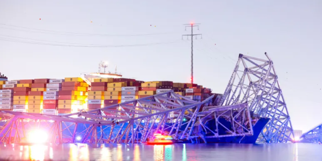 美国第八大港口城市,巴尔的摩作为美东一块重要的经济和物流枢纽,本次被集装箱船事故撞毁的大桥对整个港口的船只进出造成了严重的中断,这种情况可能影响将持续数月之久。该事故的集装箱船“DALI”由丹麦马士基运营,是一艘总吨位为95000吨的集装箱船。据悉该船在接近桥梁时,似乎失去动力并调整了航向。集装箱船同时开始冒烟,在撞上桥梁的前两分钟左右,船上的灯光二次熄灭。之后船只撞上桥梁,大桥发生坍塌。所幸已经卸完了海运集装箱里面所有从亚洲至美东的货物。